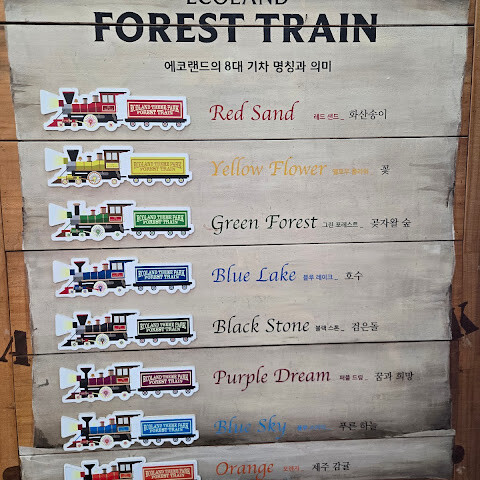 에코랜드는 제가 이틀 동안 다녀온 전세 여행 중 가장 편안했던 곳이었어요. 성인 입장료는 19,000원, 청소년(14~19세)은 16,000원입니다. 내부에는 작은 기차역이 네 곳 있는데, 각 역에 내려서 둘러볼 수 있어요. 첫 번째와 두 번째 역만 환승역으로 연결되어 있고, 나머지 역은 그냥 승하차만 가능한 정류장입니다. 되돌아갈 필요가 없으니 각 역을 최대한 둘러보세요.