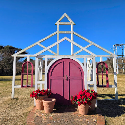 족욕탕 옆에는 분홍빛이 도는 보라색 나무 다리가 있는데, 사진 찍기에도 좋습니다. 더 가면 아기자기한 가게들과 잔디밭, 라벤더 밭(겨울에는 없음)이 나옵니다. 이 구역을 둘러본 후에는 길을 따라 입구로 돌아가거나 4번 역에서 기차를 타고 돌아갈 수 있습니다. 마지막으로 큰 기념품 가게를 구경하며 즐거운 여행을 마무리하세요!