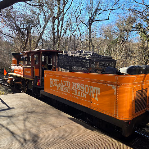 에코랜드 내에서 4개 역까지 운행하는 저렴한 기차 두 대를 이용할 수 있습니다. 각 역마다 고유한 풍경, 명소, 분위기가 있습니다.