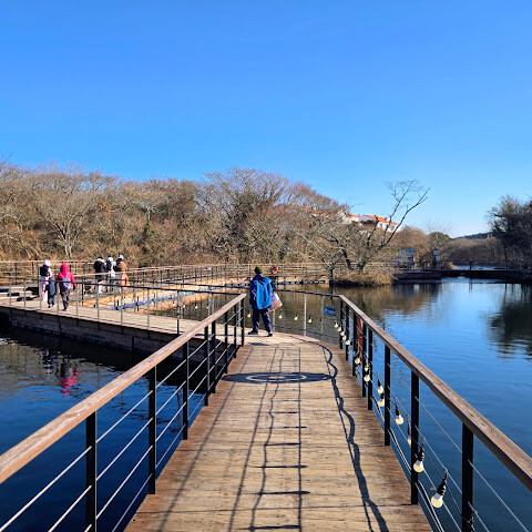 방문하기 좋은 곳이에요. 호숫가 산책로를 따라 걸으며, 집집마다 먹이를 주고, 농장 같은 건물도 구경할 수 있어요.