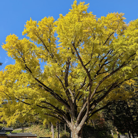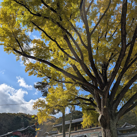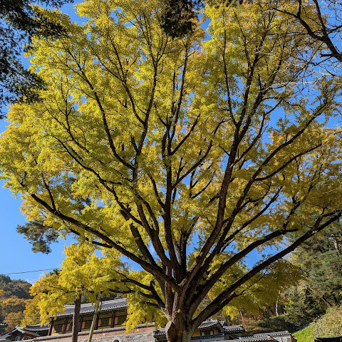 노랗게 물든 잎들이 사찰 풍경과 어우러져서 시간 흐름이 잠시 멈춘 듯한 분위기였달까요.