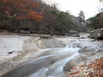 절벽의 높이가 수백척이며 바위층이 첩첩을 이루어 하늘의 지붕인 듯 길게 뻗어 아름다운 자태를 뽐낸다.
