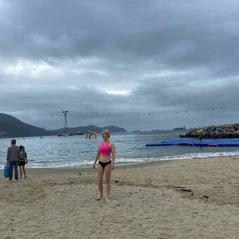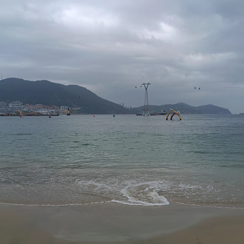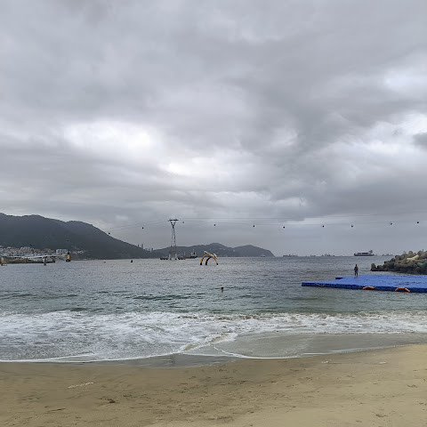 목욕하러 올 생각이라면 시간을 낭비하지 마십시오. 날씨가 흐리고 파도도 없는데 인명구조원이 물 근처까지 간다고 혼난다.