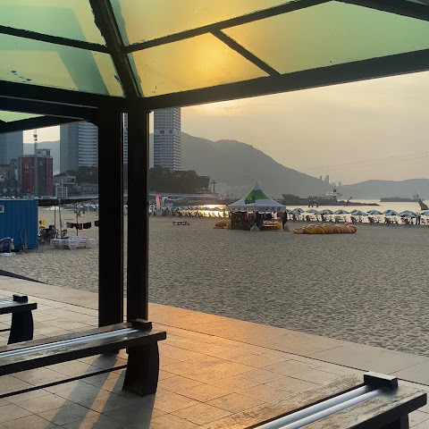 멋진 해변이었어요. 광갈리보다 더 마음에 들었어요. 사람도 적고 조용했어요. 다만 지하철역에서 걸어가거나 버스를 타야 해요. 걸어서 갈 수 있는 멋진 다리와 케이블카도 있어요. 케이블카는 일찍 가는 걸 추천해요. 해가 진 후에는 산이 어두워지고 모기가 많거든요.