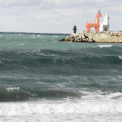 제주시에서 매우 가까운 곳에 위치한 길고 넓은 모래사장입니다. 산책을 즐기며 경치와 바닷바람을 만끽하기에 좋은 곳입니다. 해변 끝에는 독특한 말 모양의 등대 두 개가 있는데, 하나는 빨간색이고 다른 하나는 흰색입니다. 많은 방문객들이 이곳에서 말과 함께 사진을 찍습니다.