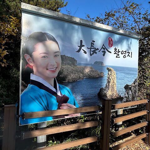 이 독립된 바위 조각상은 남편의 빠른 귀환을 기원하는 노파의 옆모습을 묘사하고 있습니다. 노파 앞에는 작은 돌이 놓여 있는데, 이는 남편이 거북이로 돌아온다는 것을 상징한다고 합니다. 조금 더 들어가면 대장금 동상이 있어 함께 사진을 찍을 수 있습니다.