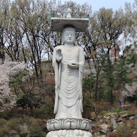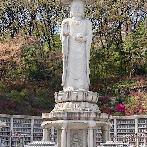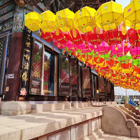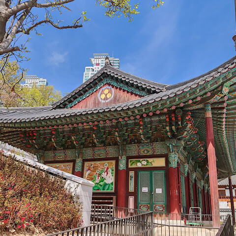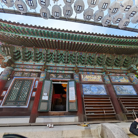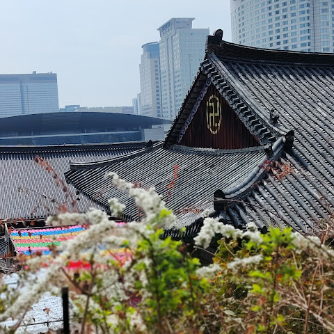 이곳은 단연 서울에서 가장 아름다운 사찰입니다. 많은 사람들이 정오쯤 참배하러 옵니다. 모두들 예의 바르고 친절하며, 특히 관광객인 것을 알면 더욱 정중해집니다. 건축 양식이 정말 아름다워 방문할 가치가 충분합니다. 여러 개의 작은 사찰들이 모여 있는데, 각각 모두 아름답습니다. 내부에서는 사진 촬영이 금지되어 있으며, 참배객들을 방해하지 않도록 주의해야 합니다. 정원 곳곳에 사진 찍기 좋은 장소가 많습니다. 스타필드 도서관 바로 맞은편에 있어서 두 곳을 동시에 방문할 수도 있습니다.