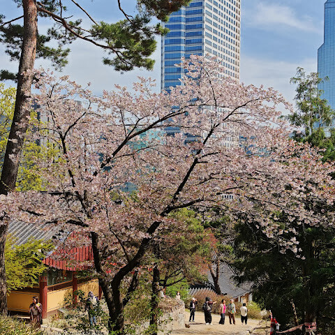 서울 강남 중심부에 위치한 이 유명하고 유서 깊은 사찰은 오랜 역사를 자랑하며, 많은 신자들이 찾아와 기도하고 소원을 빌곤 합니다. 사찰에서는 촛불, 마른 쌀, 콩 등을 구입하여 공양할 수 있습니다. 한국인들에게 매우 존경받는 사찰입니다.