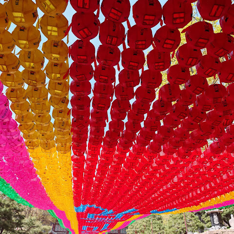 대웅전 앞마당엔 색색의 연등이 바람에 일렁이고, 그 아래 소원 촛불을 밝히는 사람들의 얼굴에는 간절함과 희망이 교차한다.