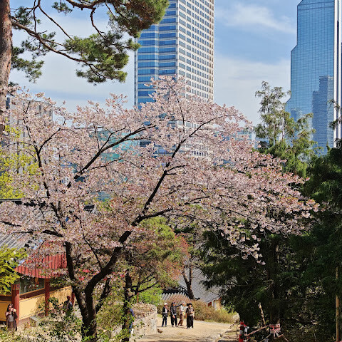 봉은사는 정말 좋은 곳이에요! 입장료가 무료일 뿐만 아니라 멋진 전망대와 사찰들이 많고, 일부 사찰에서는 스님들이 기도를 드리는 모습도 볼 수 있어요. 저희는 3월 말에 방문했는데 벚꽃도 피어 있어서 더욱 아름다웠어요. 출구 근처에는 아기자기한 기념품 가게도 있답니다!