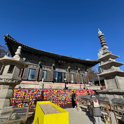 매우 아름다운 사찰이며, 잘 관리되어 있고 서울의 건물들로 둘러싸여 있습니다.