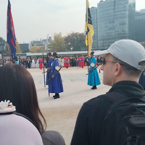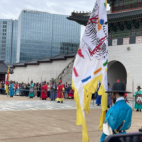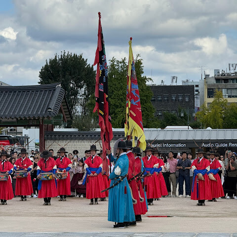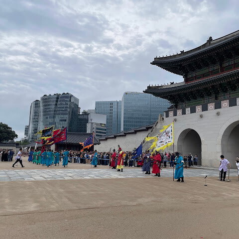 방금 수문장교대식이 개최되어 화려한 전통의상을 입은 병사들이 정연하게 행진하는 모습은 박력이 있어 역사적인 의식을 가까이서 체험할 수 있어 감동했습니다.