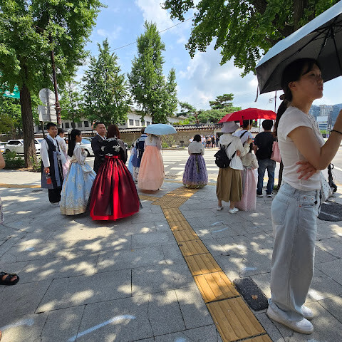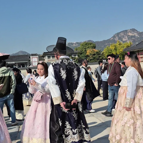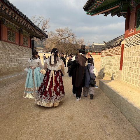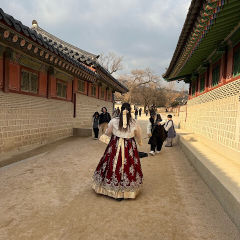 전통 의상을 입고, 궁궐 안을 거닐고, 15세기 근위병 교대식을 관람하고, 투어를 예약하고, 사진 촬영까지... 모든 걸 다 해봤어요. 한복을 입으면 입장료가 면제됩니다. 정말 황홀한 경험이었어요. 선택할 수 있는 한복 가게가 많으니, 디자인과 품질이 다양하니 구매 전에 최대한 많이 둘러보세요.