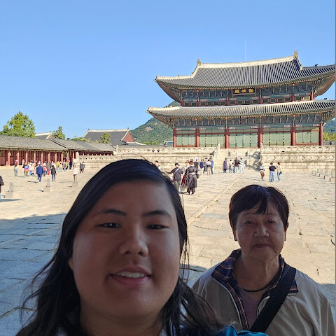 영어: 관광하기에는 좋은 곳이지만 시간이 많지 않아서(비행기 환승) 들어가지 않았고 돈도 내고 싶지 않았어요. 그냥 바깥을 보는 것만으로도 만족했어요. ㅎㅎ 조언 하나 드리자면 여름에 갈 때는 모자, 우산, 선글라스, 자외선 차단제, 선풍기, 햇빛을 가릴 수 있는 물건을 가져가세요. 날씨가 덥고 너무 밝아서 눈이 아프고 두통이 왔어요. 그리고 한복을 빌리세요!