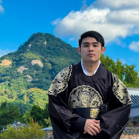 제가 이곳에 온 이유는 한국 정부에서 복원한 이 건물이 원래의 역사적 유물은 아니지만, 매우 아름답고 장엄하기 때문입니다. 이는 왕과 신하들에 대한 백성들의 존경심을 보여줍니다. 저는 이 건물 지붕에 있는 용을 보는 행운도 누렸습니다. 전설에 따르면 용을 보는 사람은 행운과 건강을 얻는다고 합니다.