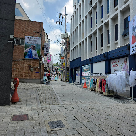 그러니 길을 건너 궁궐 반대 방향으로 걸어가세요. 뒷골목과 옆길에 가게가 많이 있어요. 드레스가 다 똑같지는 않으니까 마음에 드는 가게를 고르세요.