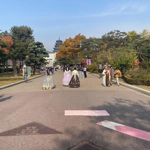 경복궁을 방문하면서 제가 경험한 것은 아름다운 단풍과 세계 각국의 여성들이 아름다운 한복을 입고 궁궐 곳곳에서 사진을 찍는 모습뿐이었습니다.