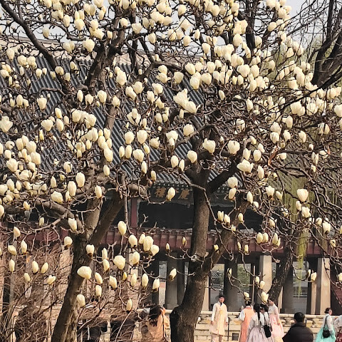 꼭 가봐야 할 인기 명소는 경복궁입니다 (한복 입고 사진 찍는 사람들이 정말 많아요 🤳). 설날에는 사람이 정말 많답니다! == 궁궐이 워낙 넓어서 많이 걸어야 하니 다리가 아플 거예요… 설날 기간에는 입장료가 무료입니다!