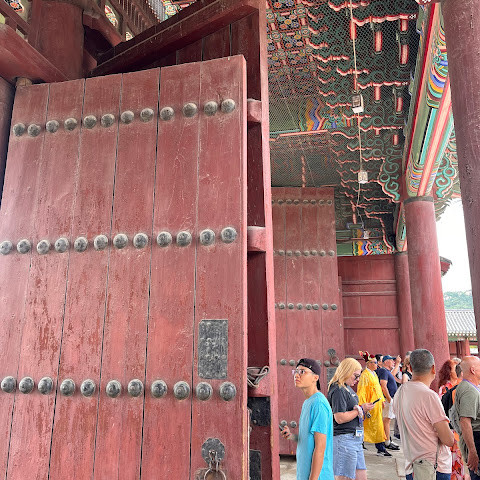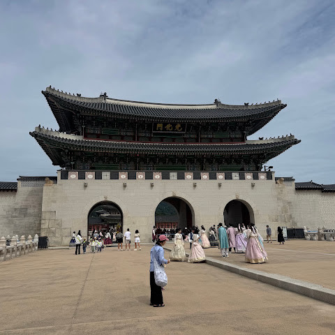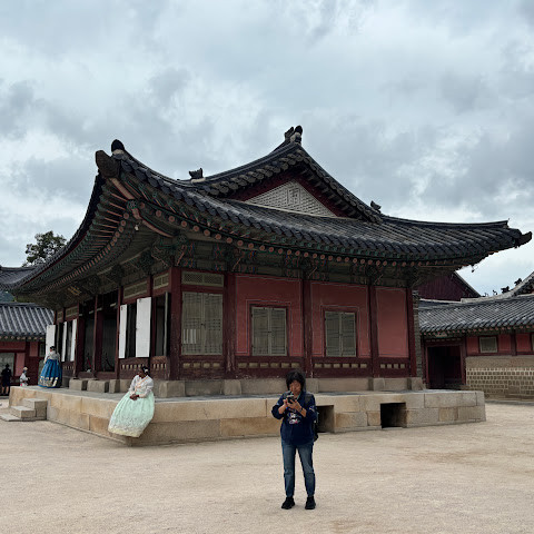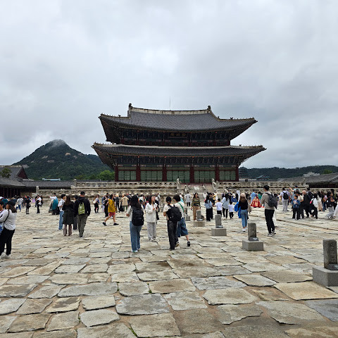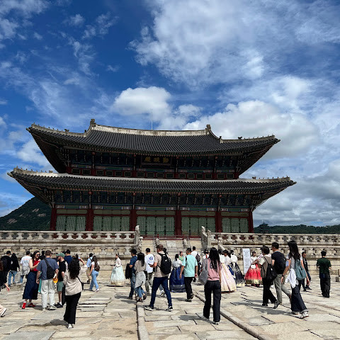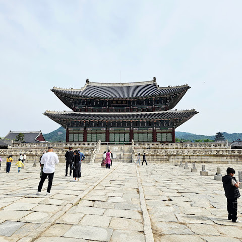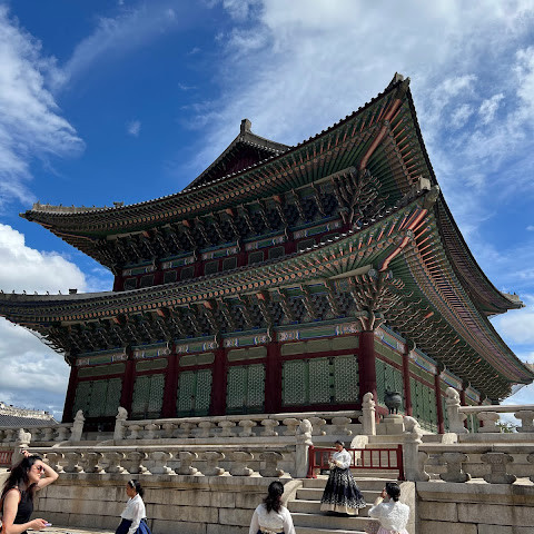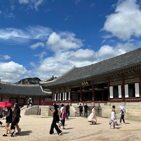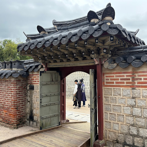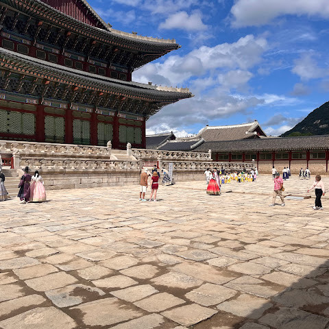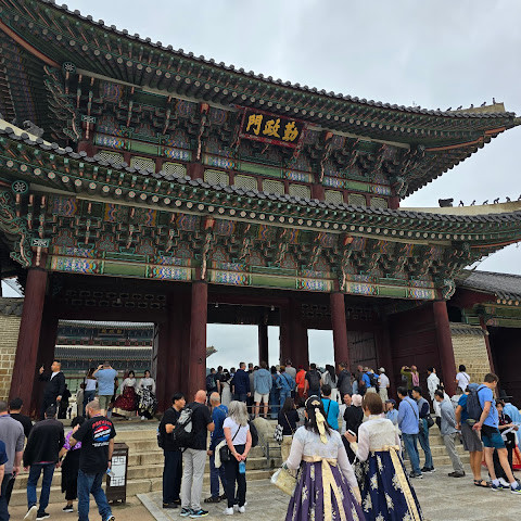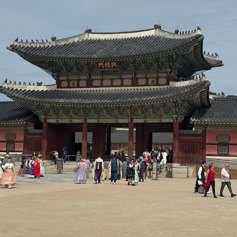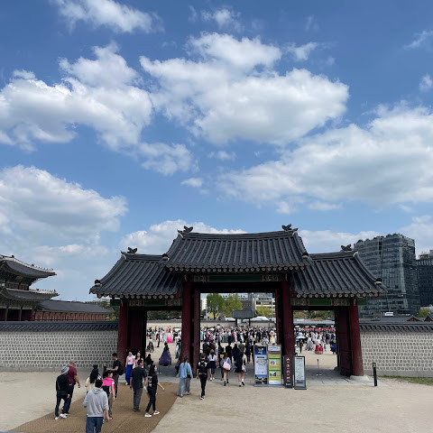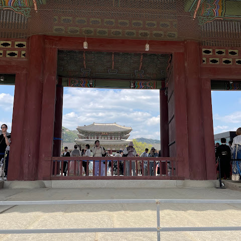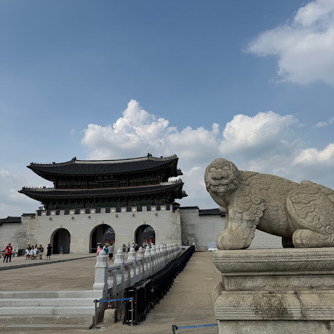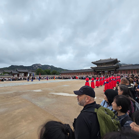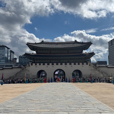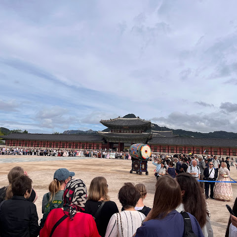 오전 9시 45분 정각에 경복궁 광화문으로 달려가 밤 10시에 열리는 **골키퍼 교대식**을 관람했어요. 인파가 너무 많아서 마치 고대로 시간 여행을 온 것 같았어요. 한국의 전통 문화를 경험할 수 있는 흔치 않은 기회였죠! 그 후, 궁궐 안에서 사진을 잔뜩 찍고 📸 바로 근처 북촌 한옥마을로 가서 더 많은 사진을 찍었어요!