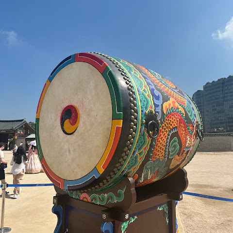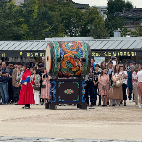서울에서 꼭 가봐야 할 명소인데, 입장권은 따로 사지 않았어요. 밖에서 한국 전통 무용 공연을 봤는데, 한복을 입은 관광객들이 많아서 경복궁 분위기가 더 좋았어요.
