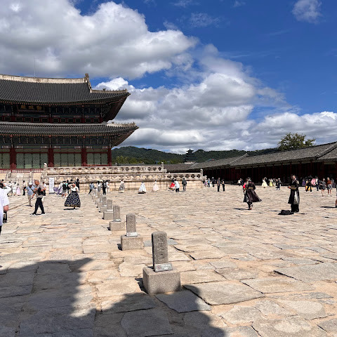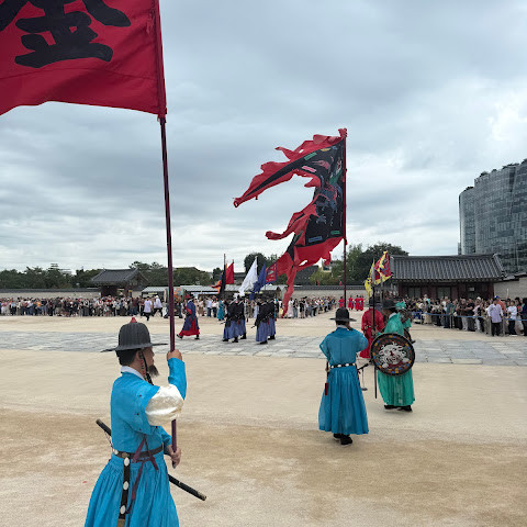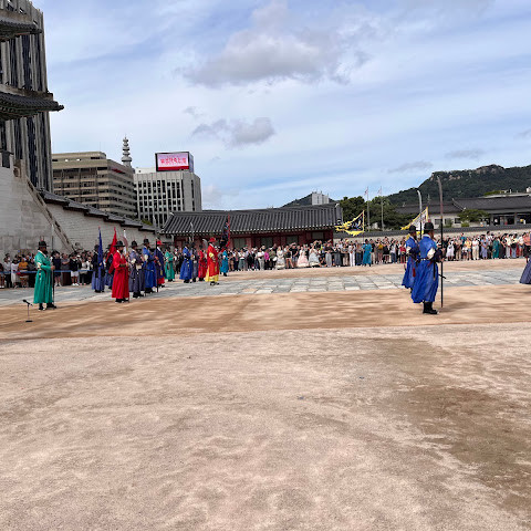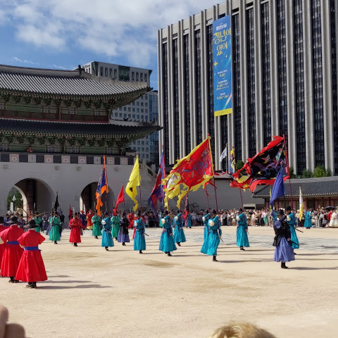 10시와 14시에 근위병 교대식이 있습니다. 서울에 계시다면 화요일(휴관)을 제외하고 꼭 방문해 보세요. 서울은 특별히 역사적인 도시는 아닙니다. 서울에 계시는 동안 이 궁궐을 꼭 방문해 보세요. 10월에는 날씨가 시원했지만, 화창한 날에는 아이와 함께하기 어려울 것 같습니다.