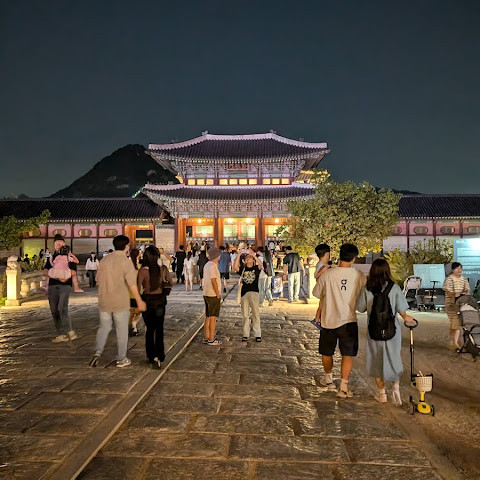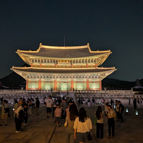 경복궁은 정말 아름다워요. 저희는 낮에 갔었는데, 밤이 더 아름답다는 걸 알아요. 경복궁은 전통 한복을 입고 최고의 순간을 포착하기 위해 많은 방문객을 끌어들이죠. 시간이 더 많았으면 더 오래 머물거나 밤에 다시 방문하고 싶어요. 다음에 한국에 오면 밤에 방문할 때 꼭 리스트에 넣어둘게요.