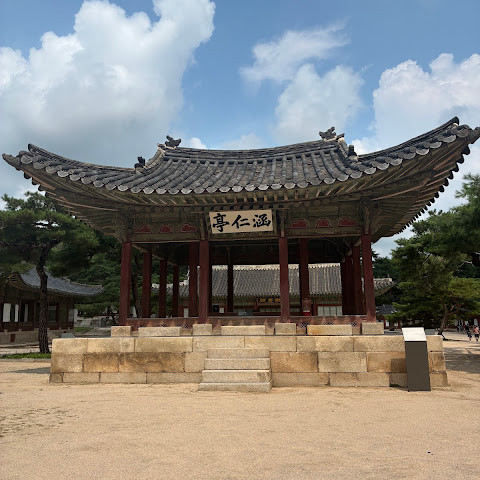 10월 3일, 창덕궁 가이드 투어에 참여했습니다. 세자궁과 태후궁을 닮았다고 하더군요. 주변에는 동궁의 원래 터라고 적힌 천막들이 많이 있었습니다. 창덕궁과 연결되어 있어서 뒷정원은 들어갈 수 있지만, 비원에는 들어갈 수 없습니다. 정말 신비로워서 입구를 찾을 수가 없었습니다. 창덕궁 매표소에 두 번이나 갔지만 두 번 다 매진이라고 하더군요.