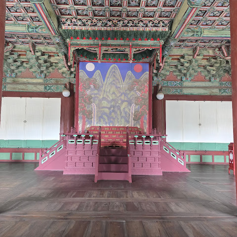 이곳은 조선 시대부터 남아 있는 건물입니다. 궁궐은 매우 단순하게 설계되었습니다. 많은 나무와 초목을 볼 수 있습니다. 집들은 대부분 단층 건물입니다. 전체 면적이 크지 않아 흥미로운 것들을 즐길 수 있습니다.