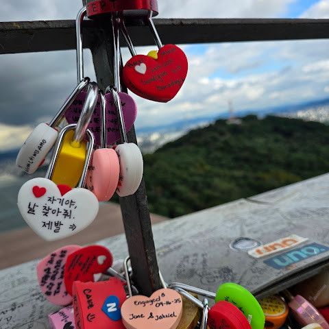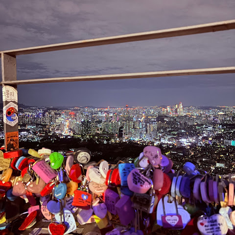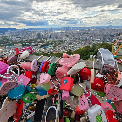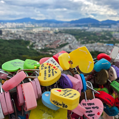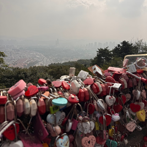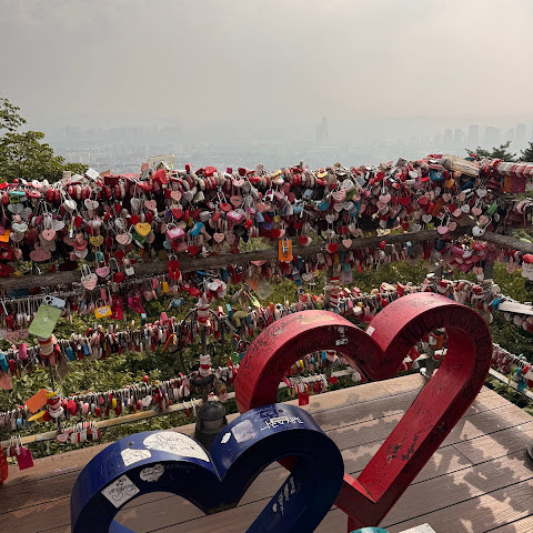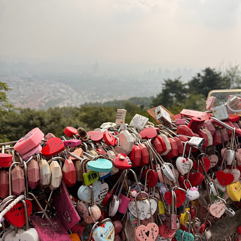 남산(N서울타워) 방문은 서울 여행의 하이라이트 중 하나였습니다! 케이블카를 타고 올라가면 아름다운 서울의 풍경을 감상할 수 있었고, 정상에 도착한 전망대에서는 서울 스카이라인의 360도 파노라마를 감상할 수 있었습니다. 특히 해 질 녘 도시의 불빛이 반짝이기 시작하는 모습은 정말 아름다웠습니다.