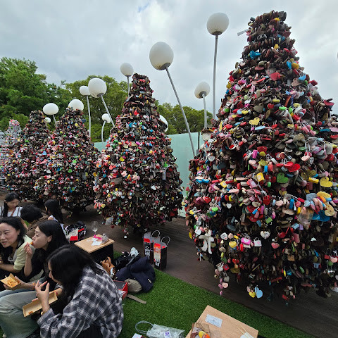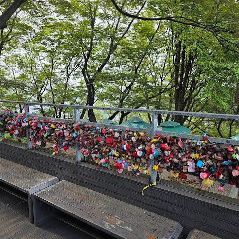 남산타워 아래 일대는 활기 넘치는 명소로, 특히 수많은 "사랑의 자물쇠"로 유명합니다. 연인들에게는 꼭 봐야 할 명소이자 재미있는 사진 촬영 명소입니다. 남산 케이블카를 이용하면 더욱 아름다운 경치를 감상할 수 있습니다.