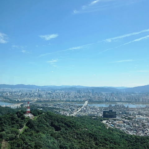 서울의 위풍당당하고 장엄한 자연을 감상하실 수 있습니다. 강과 산이 어우러져 있죠.