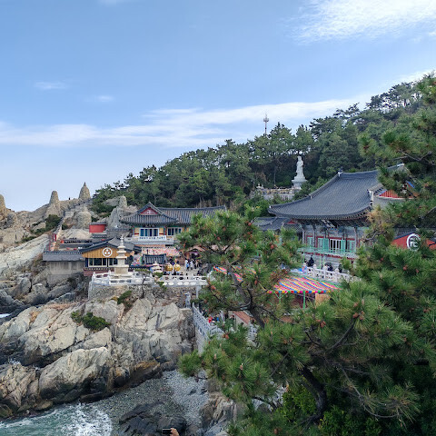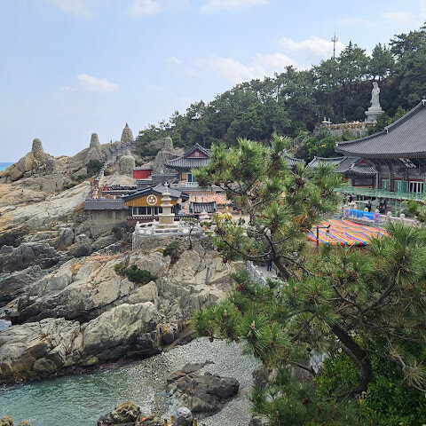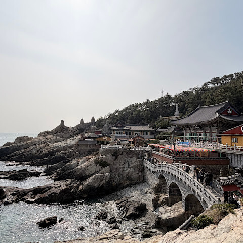 송정 근처에 숙박했을때 방문한 곳이요. 바다와 절이 어우러진 풍경이 인상적인 사찰입니다. 절벽을 따라 내려가며 마주하는 푸른 바다와 파도 소리 덕분에 다른 지역의 사찰과는 전혀 다른 분위기를 느낄 수 있답니다. 금요일에 갔는데 외국인,현지 관광객들 많더라고요. 소원도 빌고 행운의 쌍무지개도 운좋게 보고 왔습니다 🌈🌈 기억에 많이 남을 것 같아요☺️