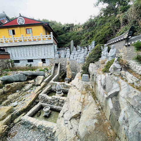 들어가는 입구부터 관광객들이 엄청 많아서 떠밀려 들어갔어요. 입구 들어가다보면 12지신상이 있구요 걷다보면 여러 부처님들과 소원을 비는 곳이 있어요. 1000원 시주하고 소원등 거는 행사중이구요 오션뷰 카페가 있어서 추울때 쉬어가면 좋아요.(수제쌍화차 대추차 마셨는데 진국이지만 가격이 사악합니다) 바다를 끼고 있는 절의 모습이 멋집니다. 누워계신 부처님도 계시고 부산가면 한번쯤 들러볼만해요. ^^
