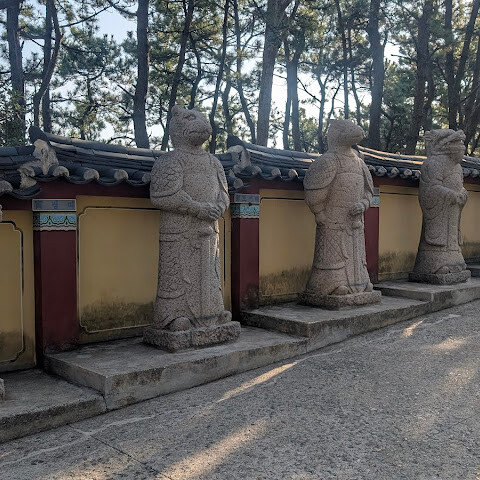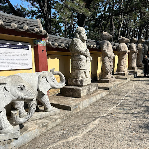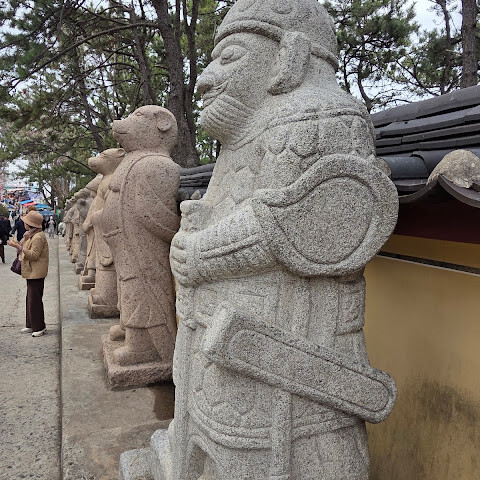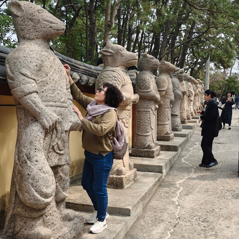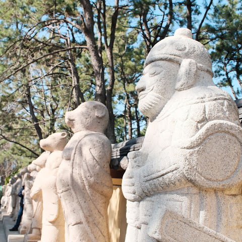3. 안으로 들어가면 십이지신 수호신상이 있습니다. 입구에 있는 십이지신상은 수호신 역할을 합니다. 자신의 띠 동물을 찾아 사진을 찍고 평화를 기원할 수 있습니다.
