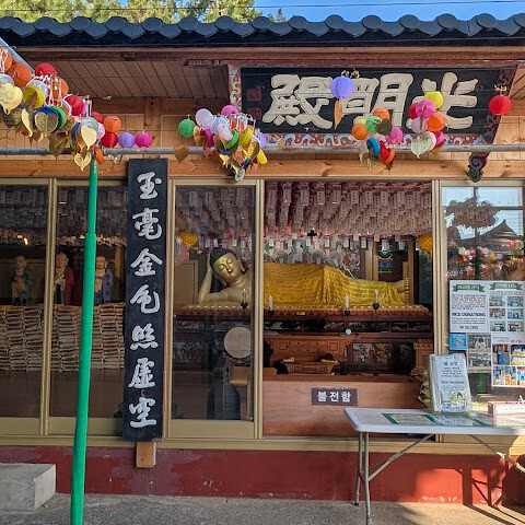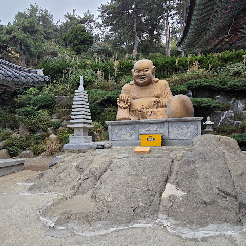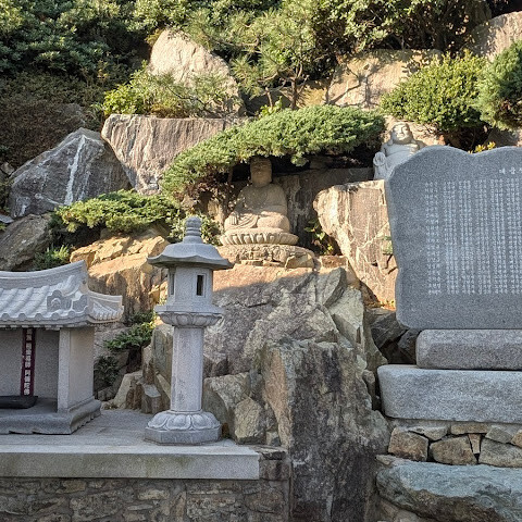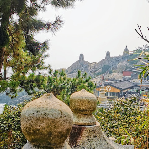 바닷가에 위치한 아름다운 절입니다. 날씨가 선선할 때 산책하기 좋습니다. 버스 정류장은 큰길 바로 밖에 있으며, 절까지는 약 500m 정도 걸어가야 합니다. 입장료는 무료입니다. 근처에 문어 요리와 12가지 반찬을 제공하는 맛있는 식당이 있습니다.