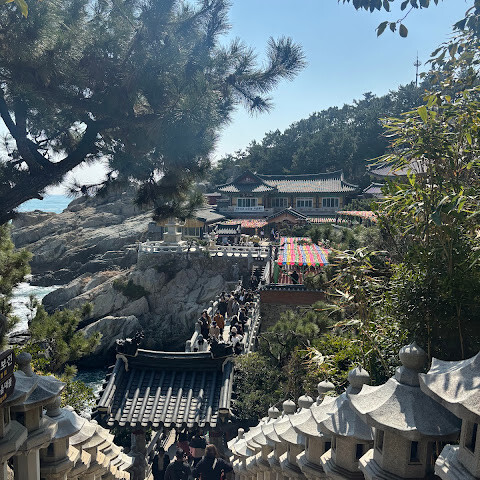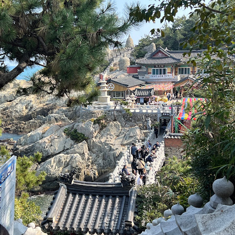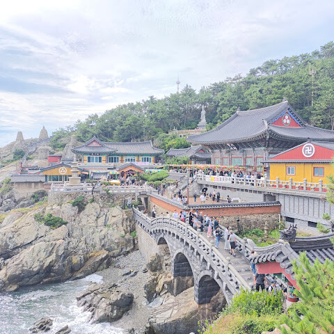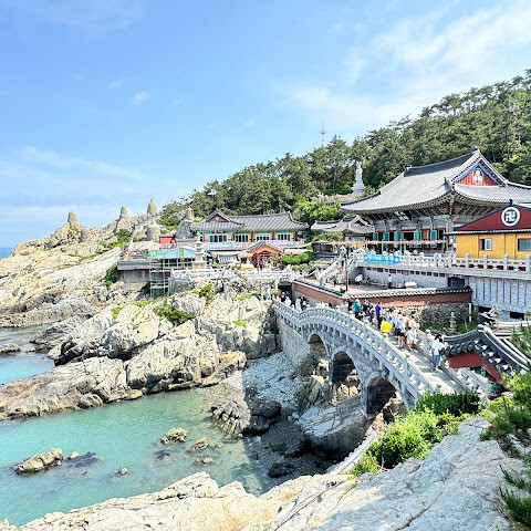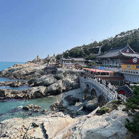 송정 근처에 숙박했을때 방문한 곳이요. 바다와 절이 어우러진 풍경이 인상적인 사찰입니다. 절벽을 따라 내려가며 마주하는 푸른 바다와 파도 소리 덕분에 다른 지역의 사찰과는 전혀 다른 분위기를 느낄 수 있답니다. 금요일에 갔는데 외국인,현지 관광객들 많더라고요. 소원도 빌고 행운의 쌍무지개도 운좋게 보고 왔습니다 🌈🌈 기억에 많이 남을 것 같아요☺️