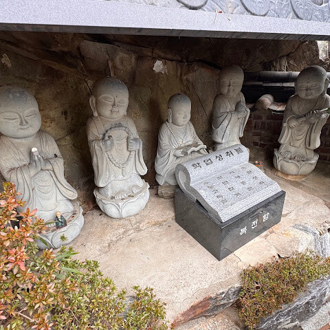 미륵좌상: 사찰 앞에 위치하여 많은 사람들이 아이들의 소원을 빌기 위해 찾아옵니다.
