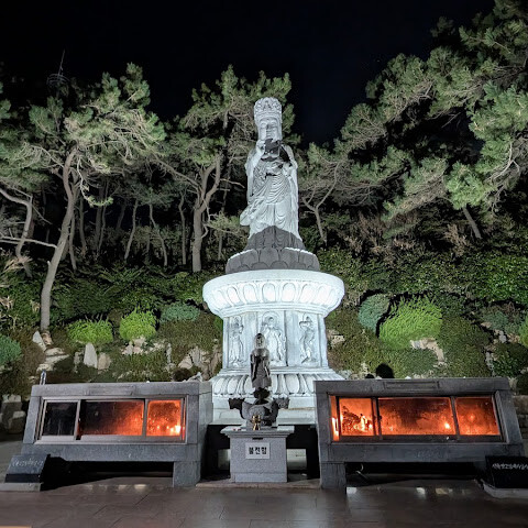 부산 동부에 계시다면 꼭 방문해볼 만한 사찰입니다. 바닷가 절벽에 지어진 놀라운 전통 사찰 건축 양식을 자랑합니다. 바위에 부딪히는 파도의 장엄한 풍경은 평화로운 휴식을 선사합니다.