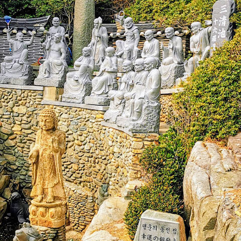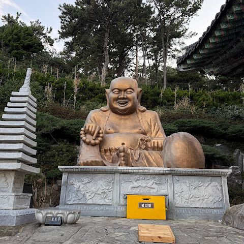들어가는 입구부터 관광객들이 엄청 많아서 떠밀려 들어갔어요. 입구 들어가다보면 12지신상이 있구요 걷다보면 여러 부처님들과 소원을 비는 곳이 있어요. 1000원 시주하고 소원등 거는 행사중이구요 오션뷰 카페가 있어서 추울때 쉬어가면 좋아요.(수제쌍화차 대추차 마셨는데 진국이지만 가격이 사악합니다) 바다를 끼고 있는 절의 모습이 멋집니다. 누워계신 부처님도 계시고 부산가면 한번쯤 들러볼만해요. ^^