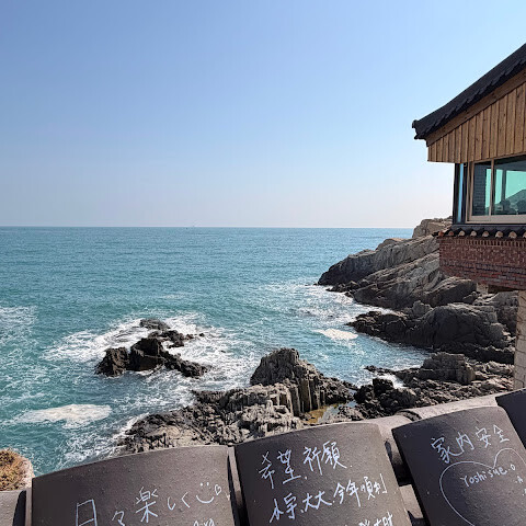 용궁사에 카페가 있는데 그곳에서 차를 즐기며 동해를 바라보면