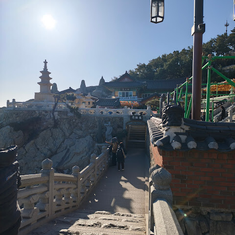바닷가 근처에 지어진 독특한 한국 사찰입니다. 사찰과 주변 지역으로 가려면 오솔길을 따라가야 합니다. 경치가 아름답고 겨울철 바람이 많이 부는 계절에는 시원함을 느낄 수 있습니다. 많은 현지인과 관광객들이 이곳에 와서 기도를 드립니다. 길은 일방통행이며 계단도 있어 무릎이 불편한 분들에게는 다소 힘들 수 있습니다.