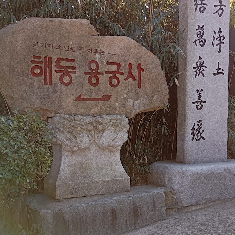 해동용궁의 계율은 "진심 어린 기도를 드리면 적어도 한 가지 소원은 이루어질 것입니다"입니다. 바다는 인류의 역사를 함께해 왔으며, 때로는 잔잔하고 때로는 거칠기도 했습니다. 해동용궁은 다른 사찰들이 산에 위치한 것과는 달리 바닷가에 자리하고 있습니다. 자비대불은 바다 한가운데 외딴곳에 홀로 거하며 용을 타고 나타난다고 전해집니다. 따라서 한국인들은 바다나 섬에서 자비대불을 숭배해 왔으며, 해동용궁은 자비대불과 관련된 3대 성지 중 하나입니다. 이 사찰은 바다, 용, 그리고 대불이 조화를 이루고 있어 다른 어떤 사찰보다 종교적 개념을 깊이 간직하고 있습니다. 동해에 가장 가까이 위치한 해동용궁은 공민왕의 신하였던 나옹 스님이 창건하셨습니다. 나옹 스님이 경주 분황사에서 수행하던 중 가뭄이 닥쳐 곡식이 타버리고 백성들이 굶주림에 시달리며 신에게 비를 내리지 않았다고 원망하던 어느 날, 꿈에 바다의 신이 나타나 봉래산 기슭에 사찰을 짓고 기도하면 모든 고난이 사라지고 백성들이 다시 행복해질 것이라고 말했습니다. 꿈을 꾼 후, 나옹 스님은 지금의 해동용궁이 있는 곳을 찾아가 보니 앞에는 산이 있고 뒤에는 바다가 있는 것을 보고 아침에 기도하면 저녁에 응답을 받을 수 있다는 것을 깨달았습니다. 그래서 그는 직접 사찰을 짓고 산의 이름을 따서 봉래산이라고 이름 지었습니다. 봉래… '봉래'라는 단어는 신비롭고 순수한 것을 의미합니다… '보문'이라는 단어는 관음보살이라 불리는 자비의 여신이 지닌 절대적이고 무한한 힘을 뜻합니다… 안타깝게도 이 사찰은 일제 강점기 때 화재로 소실되었고, 1930년대 초 통도사의 은강 스님이 재건했습니다… 그 후 여러 저명한 스님들이 사찰을 맡아 오셨는데, 정감 스님이 이 사찰이 다시 한번 자비의 여신을 모시는 법당이 되기를 기원했습니다… 백일기도 중에 정감 스님은 흰 옷을 입고 용을 타고 오색 광선을 내뿜는 자비의 여신을 꿈에서 보았고, 그 꿈 이후 사찰 이름을 해동용궁으로 바꾸었습니다… 사람들은 이곳에서 기도하면 소원 중 하나라도 이루어진다고 믿으며, 이러한 믿음 때문에 많은 사람들이 이 사찰을 찾습니다…