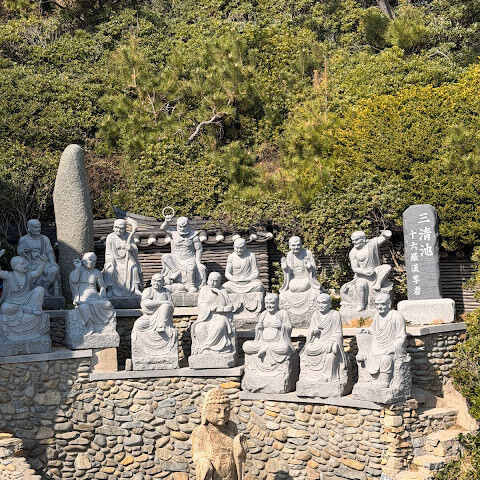 바닷가에 위치한 아름다운 절입니다. 날씨가 선선할 때 산책하기 좋습니다. 버스 정류장은 절 바로 앞 도로에 있으며, 절까지는 약 500m 정도 걸어가야 합니다. 입장료는 무료입니다. 근처에 문어 요리와 12가지 반찬을 제공하는 맛있는 식당이 있습니다.