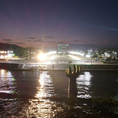 손이 두 개 있는데, 바다 위에 있는 손이 더 인상적이네요.