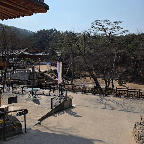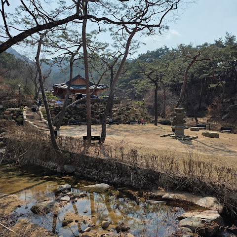 한국어와 영어로 안내가 되어 있는 작은 입구가 있고, 사찰의 길은 명확하게 표시되어 있어 걷기 쉽습니다. 방문하기 가장 좋은 시간은 이른 아침이나 늦은 오후인데, 나무 사이로 은은한 햇살이 스며들어 모든 것이 특히 평화롭게 느껴질 때입니다. 이곳의 가을은 숨 막힐 듯 아름다워 계곡 전체가 금빛과 붉은 단풍으로 물듭니다.