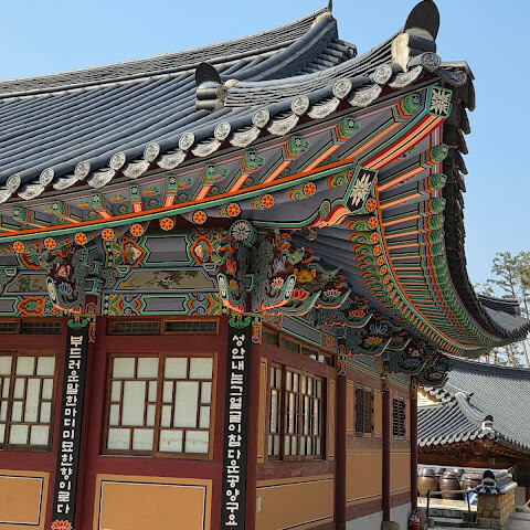 코엑스 근처 관광지에 있는 유명 사찰입니다. 전통 한복을 무료로 입어볼 수 있습니다. 친절한 직원들이 한복 착용을 도와드립니다. 태어난 해를 기념하는 촛불 의식과 쌀을 바치는 공덕 행사도 있습니다.