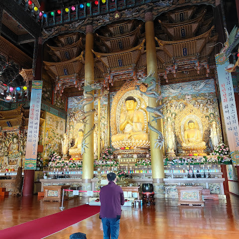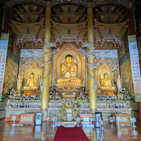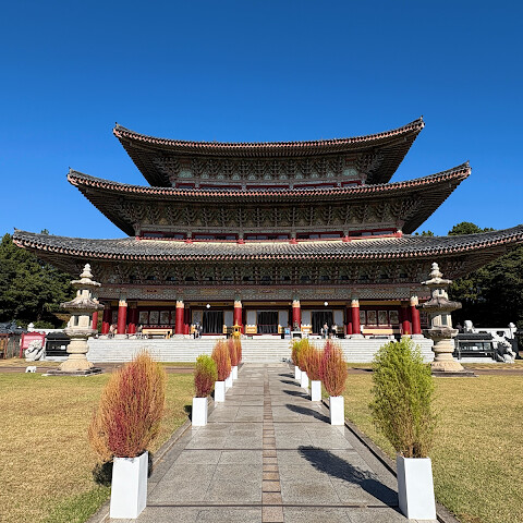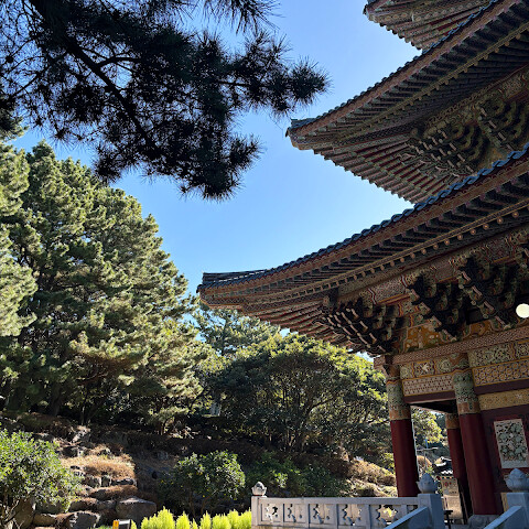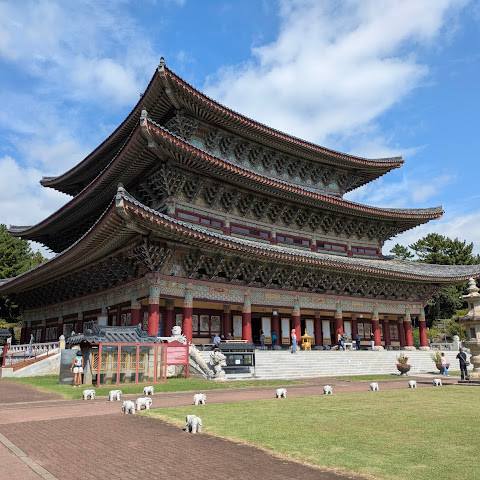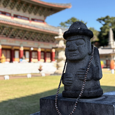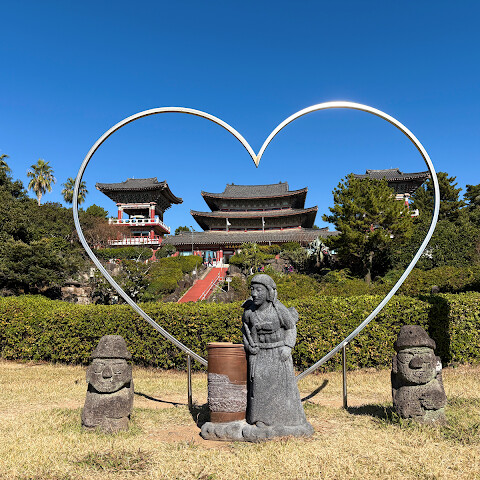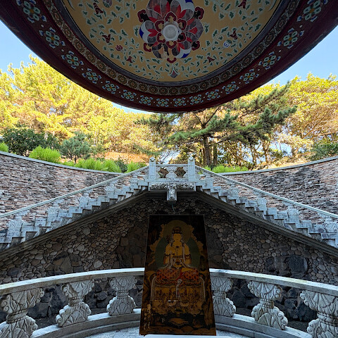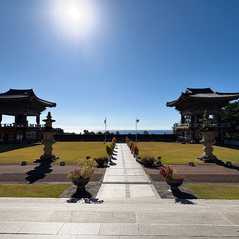 모든 여행지에서 적어도 한 곳의 사찰이나 신사를 방문했습니다. 제주도에서는 약천사를 선택했습니다. 정말 아름다웠어요.