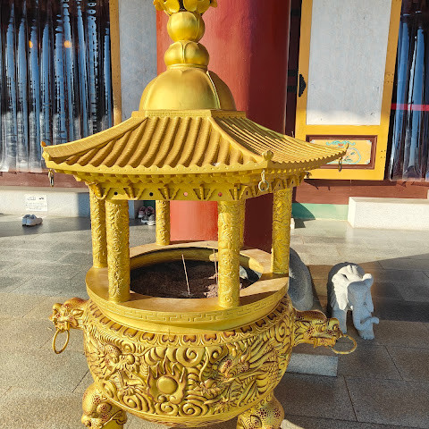 2025년 8월 단체 여행으로 방문했습니다. 이 큰 사찰은 지역 주민들의 신앙 중심지입니다. 불상은 장엄하고 우뚝 솟아 있으며, 내부는 화려한 조명과 아름다운 조각으로 장식되어 있습니다. 쌀을 사서 기도를 올릴 수도 있습니다. 밖으로 나가는 길에는 수많은 돌 코끼리가 줄지어 서 있습니다. 자세히 보면 각 코끼리의 다리 모양이 조금씩 다릅니다. 어떤 코끼리는 다리의 절반을 받치고 있고, 어떤 코끼리는 아주 살짝 받치고 있는데, 매우 귀엽습니다. 제주도의 돌 코끼리도 독특한 볼거리입니다. 태평양 전쟁을 기념하는 기념비도 있어 후대에 역사를 상기시켜 줍니다. 기념품과 의류를 파는 상인들도 있고, 여행객들을 위한 공용 화장실도 있습니다.