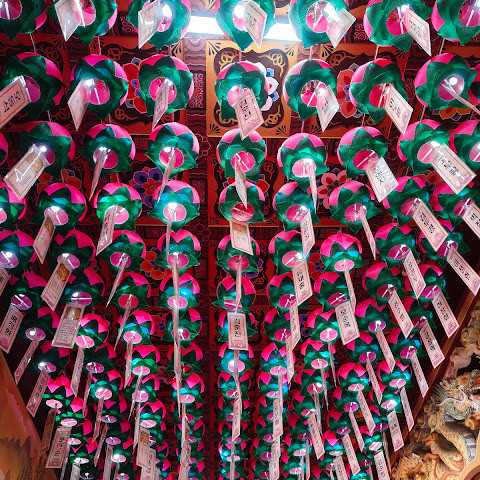 정말 평화로운 곳이에요. 주변 환경도 아름답게 관리되어 있고요. 점괘를 풀이하는 언니가 계신 것 같아요. 등불(밝은 등불?) 숫자 세기도 아름다워요... 한국은 이 지역에서 정말 대단하다고 늘 생각했어요. 한국만의 독특한 아름다움이 있거든요.