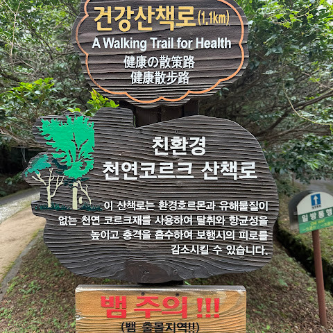 제주시와 서귀포시 중문관광단지를 잇는 1100도로 동쪽의 환상의 관광코스 중심에 자리 잡고 있다. 온대·난대·한대 수종이 다양하게 분포된 울창한 편백림에 산림욕장이 조성되어 있으며 봄에는 철쭉, 여름에는 시원한 개울물과 숲, 가을에는 아름다운 단풍, 겨울에는 설경 등 뚜렷한 계절적 감각을 느낄 수 있는 제주도 최고의 휴양림이다. 산책로와 만남의 숲, 산막, 놀이마당과 1·2야영장, 협곡탐험로, 전망대, 잔디광장, 야외무대, 야외교실, 어린이놀이터, 족구장, 체력단련장 등과 한라산에서 내려온 물이 고이는 계곡을 이용한 물놀이터 등이 있다. 캠핑을 즐길 수 있는 42개의 야영 데크도 마련되어 있다.